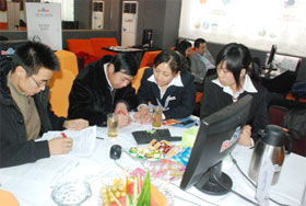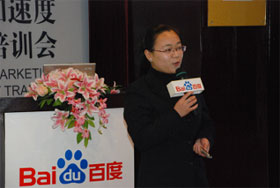 寒流入侵,涼風(fēng)習(xí)習(xí),吹不涼百度人暖暖的心田。2008年11月28號,營銷加速度——百度營銷專家培訓(xùn)會在我司三樓商務(wù)會所拉開了帷幕。眾多企業(yè)家朋友齊聚一堂,敞開心扉,交流分享。我司美女主持張捷女士擔任會議主持,貼心的問候,朝氣的笑容很快帶動了會場的氣氛。我司丁溱平女士和盧全女士擔任此次會議的主講,兩位主講精彩而深動的演講吸引了在場的每位客戶。
